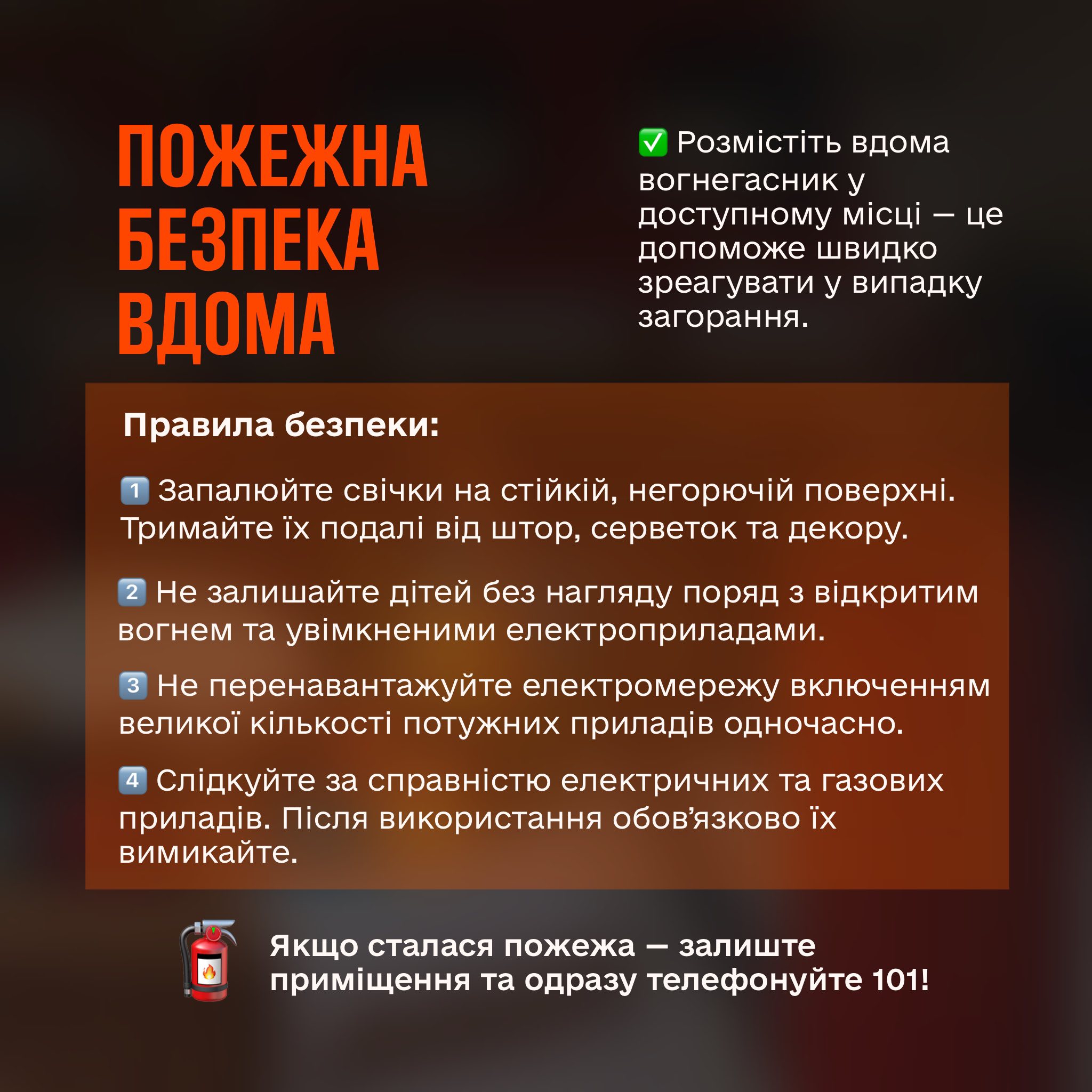 Також, після служби більшість людей несуть лампадки та запалені свічки додому. Тому звертаємо вашу увагу, що залишені без нагляду осередки відкритого вогню, можуть також стати однією з причин пожежі під час Великодня. Не ставте свічки поблизу проходів, на протязі та поблизу горючих предметів, матеріалів або під ними!