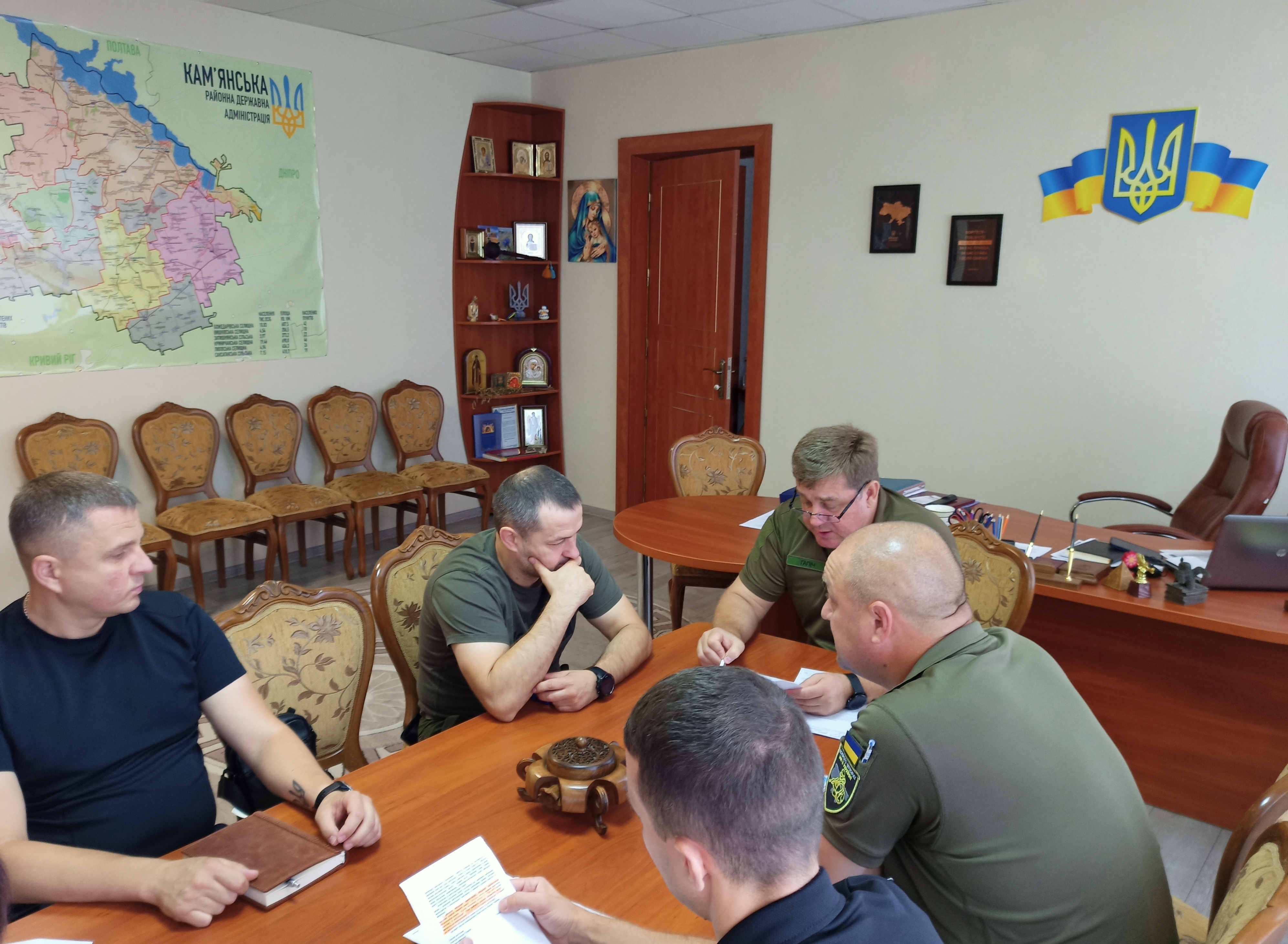 Обговорили організацію реалізації заходів мобілізації в Кам’янському районі. Відпрацювали заходи сприяння Кам’янському територіальному центру комплектування та соціальної підтримки в його роботі.