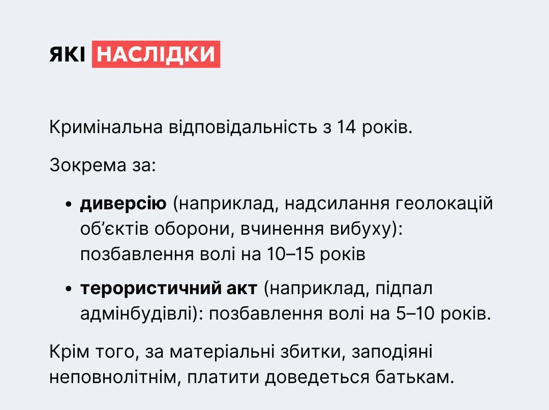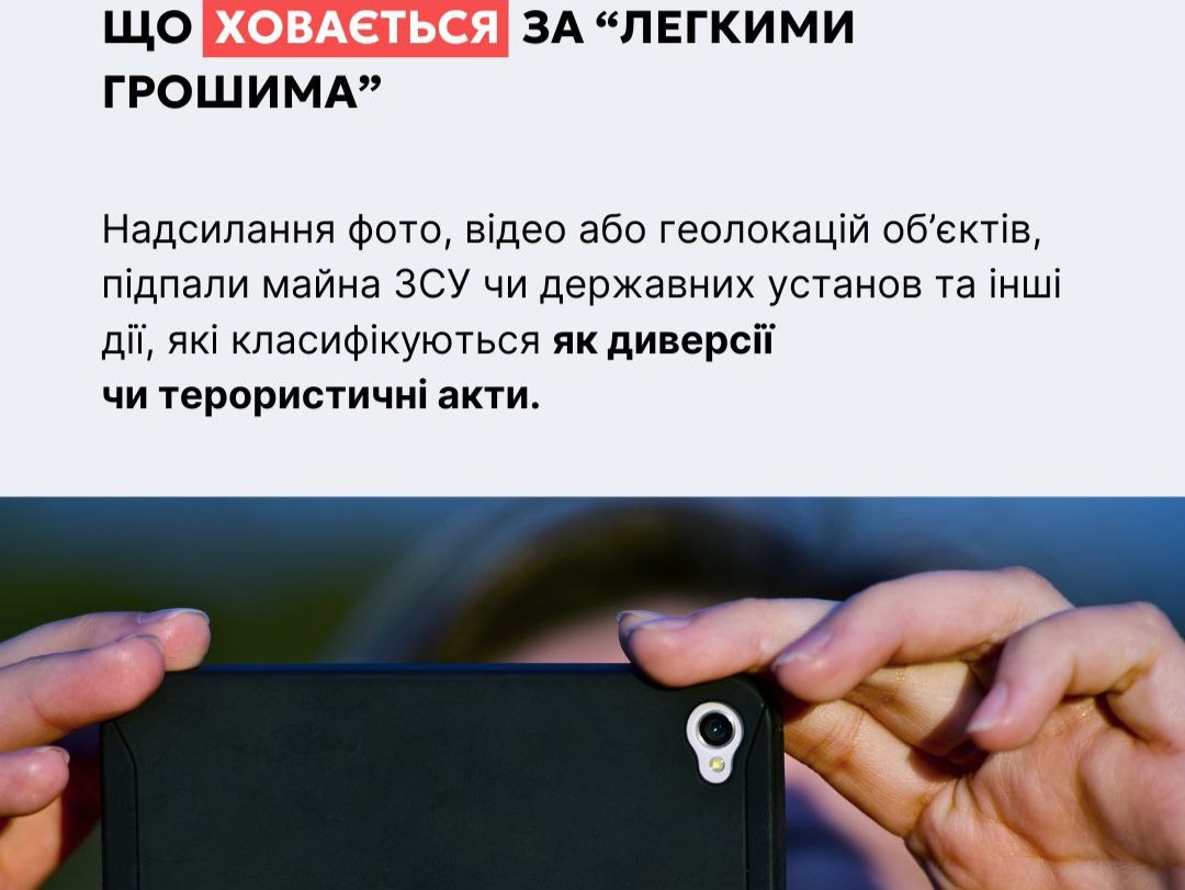 Зокрема, таким чином ворог вербує людей для злочинів. Підлітки часто піддаються такій “спокусі”, не усвідомлюючи наслідки своїх дій.